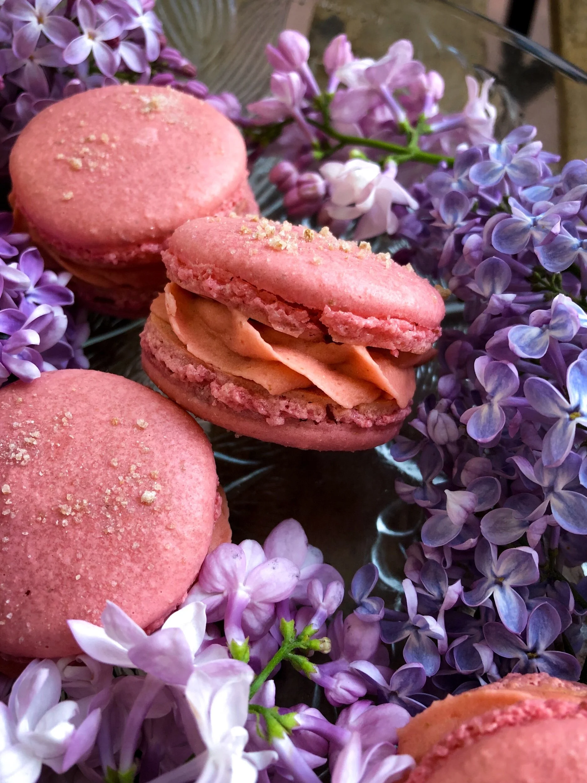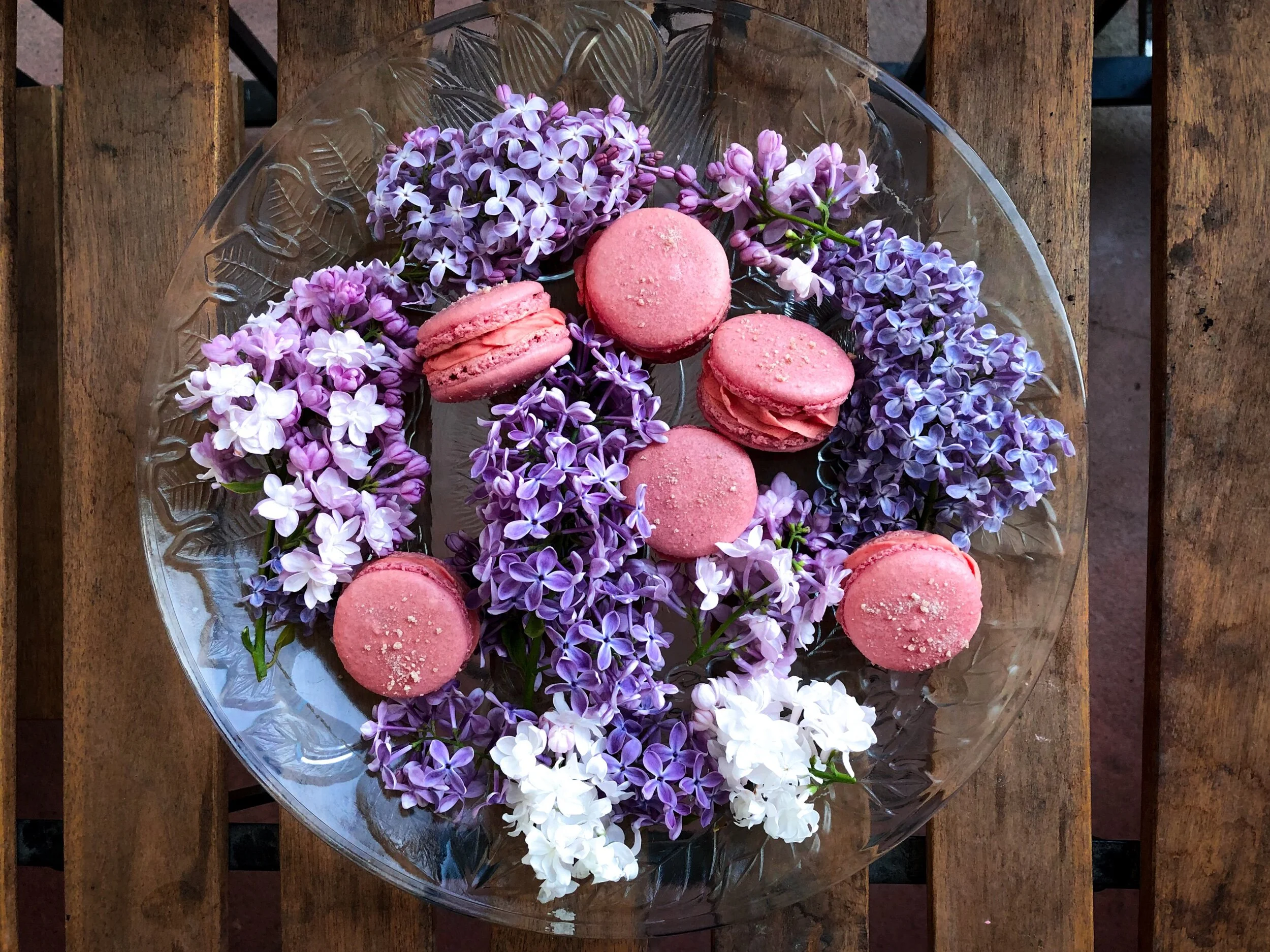 For the past few weeks my entire neighbourhood smells of lilacs. They are so abundant it seems like everyone’s yard has at least one shrub, and the public walkways are even lined with them. There are even a few feral shrubs that have self-seeded and are now growing along the highway and in some of the ditches. I usually do something each year to capture their beautiful aroma and create something sweet. In past years I’ve done flavoured sugar, and ice cream. This year it occurred to me that lilac would be a lovely macaron flavour.