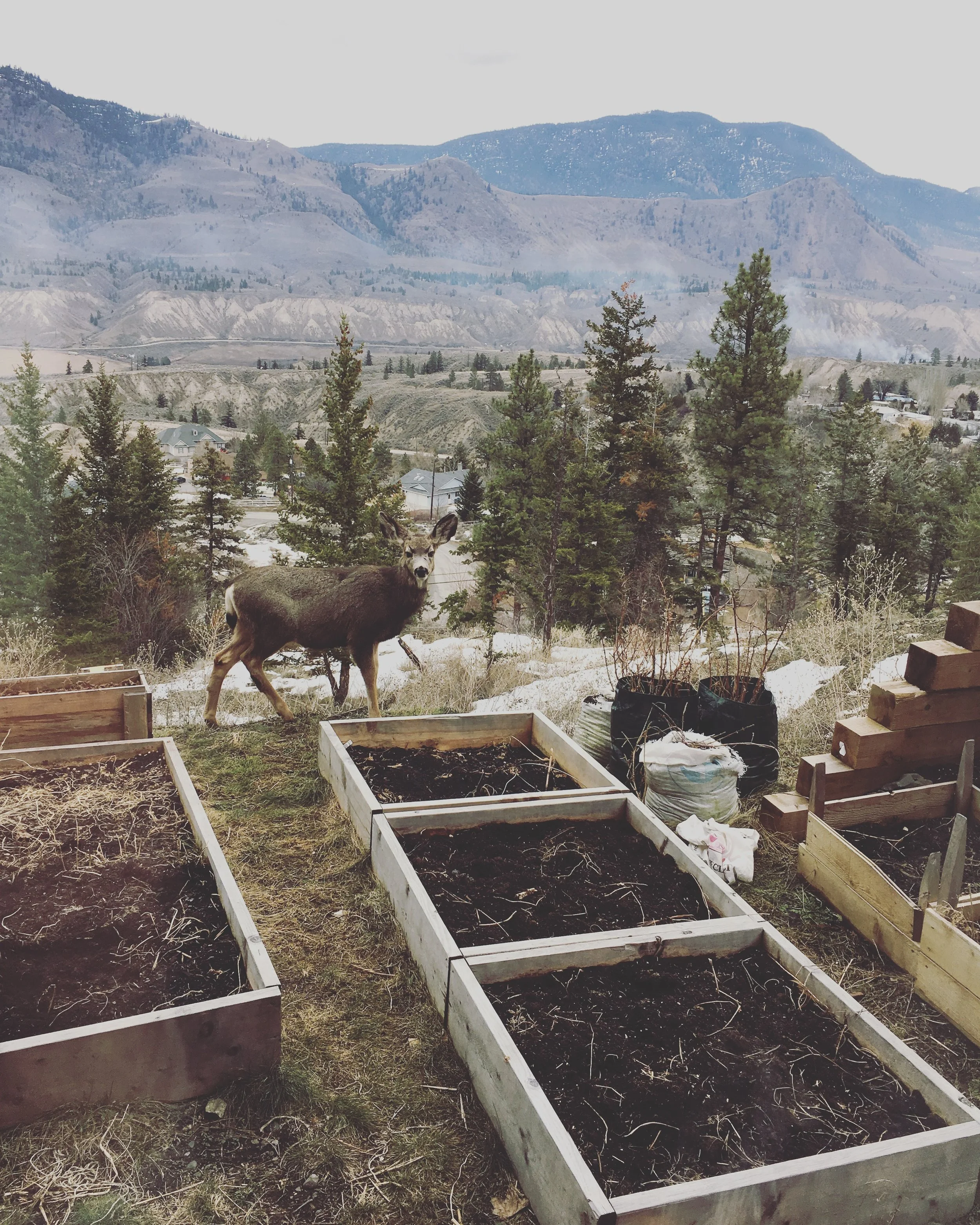 We built some really big planters for the garden out of cedar planks, and I’ll share how that worked at a later date when they are all finished. I am keeping a couple shrubs alive in the first one, and so hope to add some small fruit trees, and a grape vine. I’m hoping to use the grape vine to shade our large window a bit since it’s going to be a really hot summer and I don’t want to spend a ton on air conditioning!