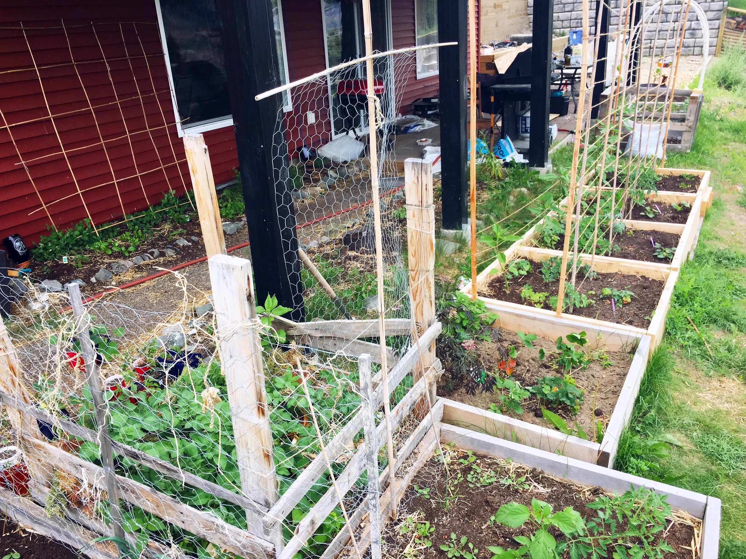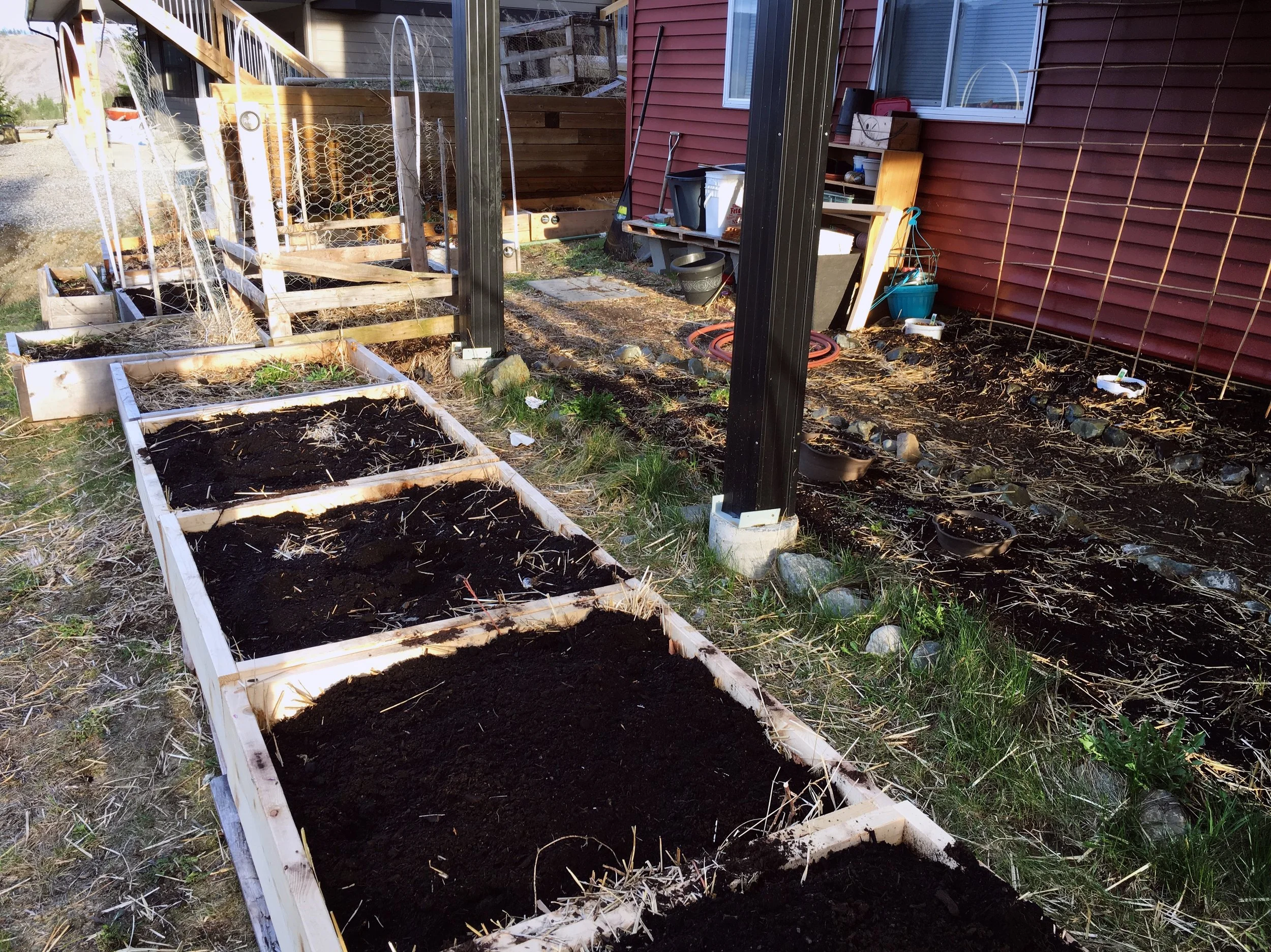 We built some really big planters for the garden out of cedar planks, and I’ll share how that worked at a later date when they are all finished. I am keeping a couple shrubs alive in the first one, and so hope to add some small fruit trees, and a grape vine. I’m hoping to use the grape vine to shade our large window a bit since it’s going to be a really hot summer and I don’t want to spend a ton on air conditioning!