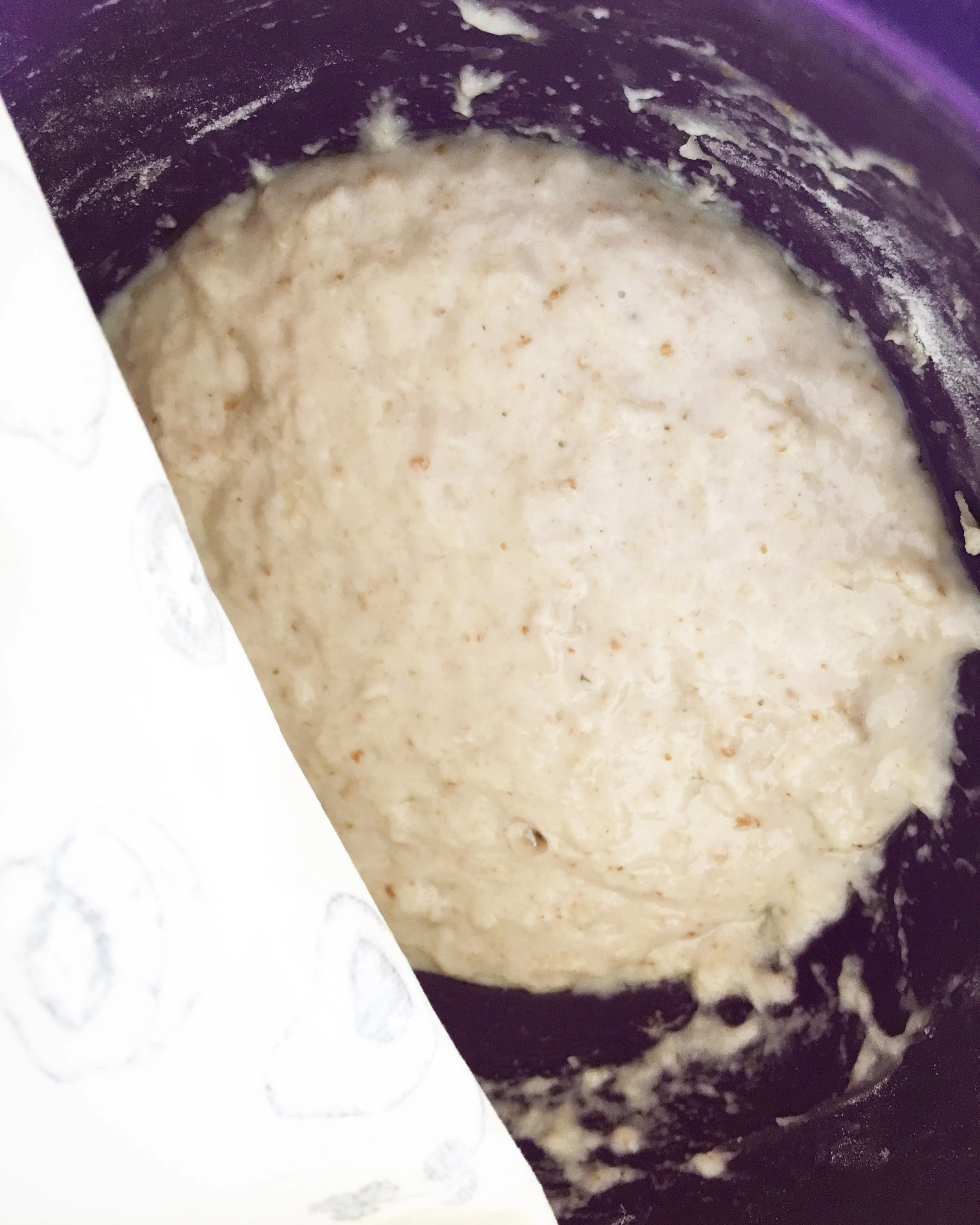 - At this point take a look at the dough. It should be a fairly tacky dough, but if it is still too wet to work with, you can add a little more flour at this point. Go lightly, though because adding too much will really take away from your finished product. The wetter it can be while still being workable the better.