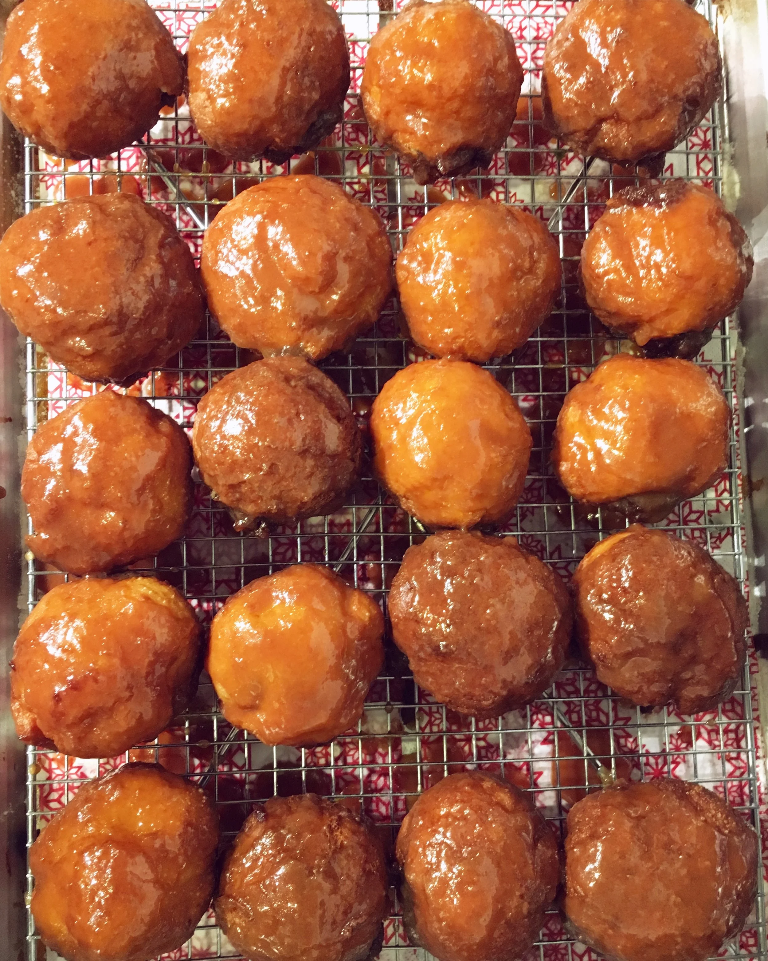 - Drizzle or brush the sauce on the doughnuts while it is still hot and very liquid.