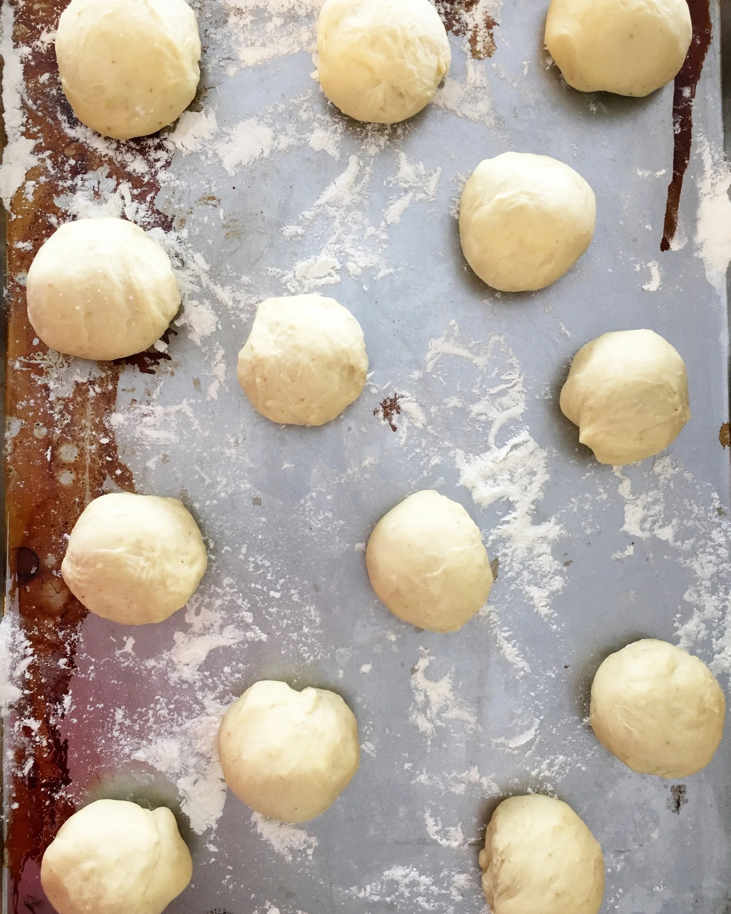 - Divide the dough and shape into balls that weigh around 70 grams each. This will give you smallish doughnuts and bring you close to the 20 amount stated in the yield at the beginning of the recipe. I found that smaller was better as sourdough is a more filling bread than one leavened with commercial yeast. Since we are also filling these and glazing them they are pretty rich so this is the size I liked. Feel free to change it up if you want fewer, larger doughnuts.